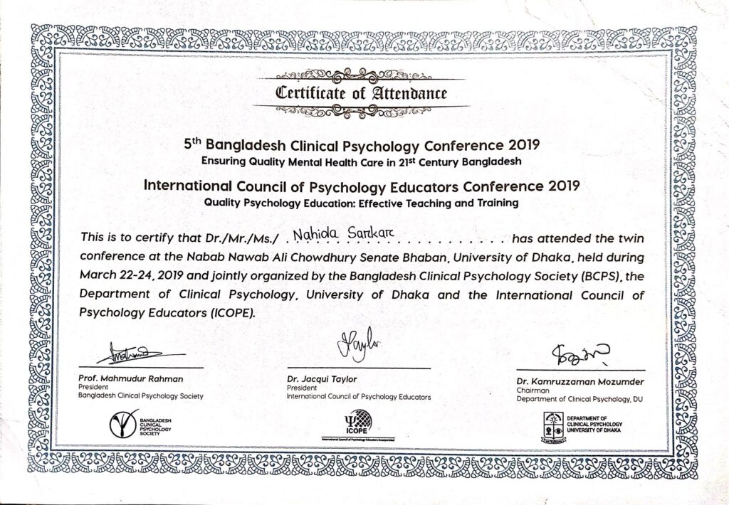 5th Bangladesh Clinical Psychology Conference and 8th ICOPE (International Council of Psychology Educators) Conference, 2019